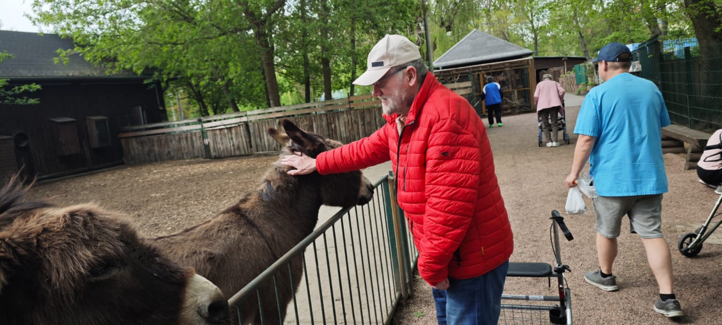 Ausflug ins Tiergehege nach Bitterfeld 🐾🌿 Am 28.04.2025 unternahm ein kleiner Teil unserer Bewohnerinnen und Bewohner einen Nachmittagsausflug ins Tiergehege. 🧑🏼🦳🐶🐰 Dabei wurden alle Tiere bestaunt, gestreichelt und/oder gefüttert. Eine Tierpflegerin vor Ort war so lieb, dass sie ein Alpaka aus dem Gehege holte, damit die Bewohnerinnen und Bewohner es aus nächster Nähe betrachten und streicheln konnten. 🦙💕 WER NOCH STAUNEN KANN, WIRD AUF SCHRITT UND TRITT BESCHENKT ✨👟 Es war wieder ein tolles Geschenk für ALLE. 🎁😊 Unsere Bewohnerinnen und Bewohner hatten eine schöne Abwechslung, und wir profitierten von strahlenden Gesichtern. 😃🌟