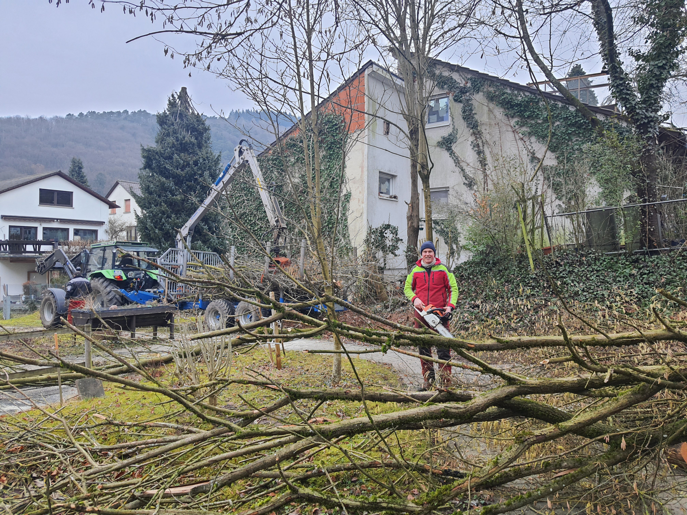 Im Laufe der Jahre waren die Bäume rund um das Haus sehr hoch gewachsen. Durch den fachgerechten Beschnitt eröffnet sich nun wieder ein wunderbarer Ausblick auf den vorderen Odenwald, der die Gartenanlage zusätzlich aufwertet und für eine offene, freundliche Atmosphäre sorgt.
