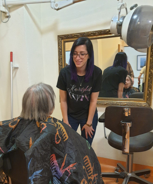 Mit viel Einfühlungsvermögen, Geduld und einem freundlichen Lächeln sorgt die junge Friseurmeisterin dafür, dass sich alle bei ihrem Besuch im Haarstudio rundum wohlfühlen.