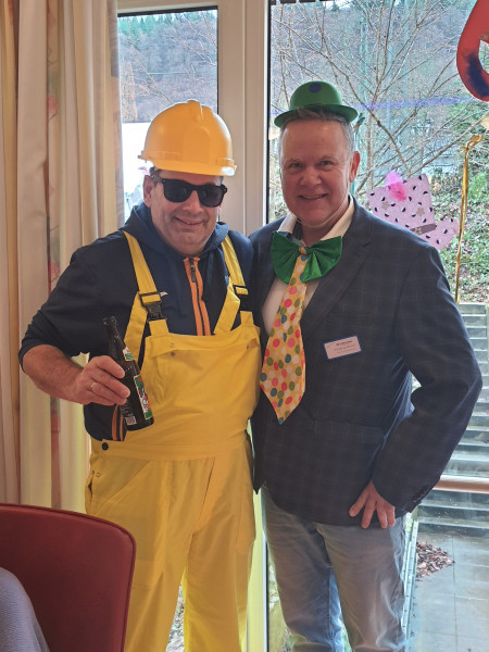 Für die liebevolle und kreative Gestaltung der Feier zeichnete die Abteilung Alltagsbegleitung verantwortlich. Mit viel Herzblut hatten die Mitarbeiterinnen den Saal geschmückt: Luftschlangen kringelten sich von der Decke, bunte Hüte warteten auf mutige Köpfe, und an jeder Ecke blitzte Konfetti. Besonders beliebt waren die fantasievollen Kostüme – von der kecken Piratin bis zum charmanten Schornsteinfeger war alles vertreten.