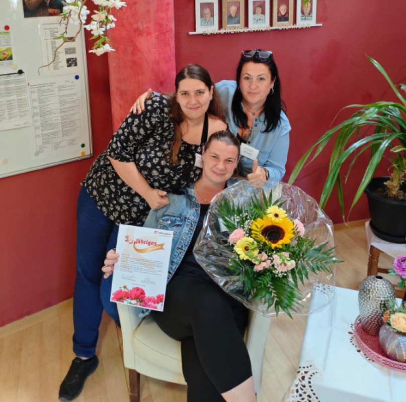 Am 23.08.2025 durften wir unsere Ari zum Dienstjubiläum beglückwünschen. 🎊🎈 Ari stieß vor 15 Jahren als Pflegehilfskraft zu unserem Team. Welchen Wandel sie in den Jahren hingelegt hat, sieht man an ihrer heutigen Position als Wohnbereichsleiterin und stellvertretende Pflegedienstleiterin. 🧑‍⚕️🏢