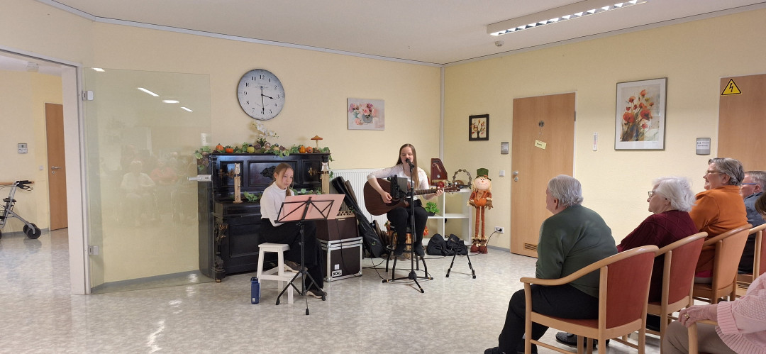 Am 24.09.2025 durften wir einen besonders schönen musikalischen Nachmittag erleben 🎶. Zwei junge Musikerinnen besuchten unser Haus und begeisterten unsere Bewohnerinnen und Bewohner mit einem abwechslungsreichen Programm aus Schlagern, Volksliedern und modernen Songs 🎵. Die Stimmung war lebhaft: Es wurde mitgesungen, gelächelt 😊 und die Musik in vollen Zügen genossen 🎉. Ein herzliches Dankeschön geht an Sophia und Melinda Gall 🙏 für diesen wundervollen Nachmittag, an dem sie so viel Freude und positive Energie in unser Haus gebracht haben! 🌟