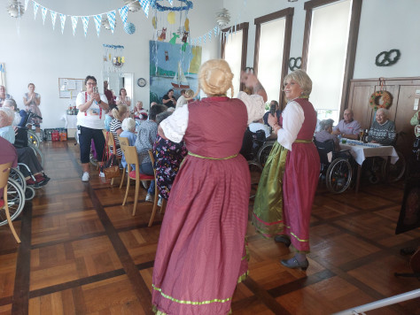 O`zapft is - hieß es bei unseren Bewohnern Wir feierten heute ein ausgelassenes Oktoberfest mit allerlei bayrischen Schmankerln. Zum Abendessen gab es Brezen mit Obazda und Leberkäs mit Oma`s Kartoffelsalat und zum Kaffee kredenzten wir ofenfrischen Kuchen mit guter Schlagsahne.