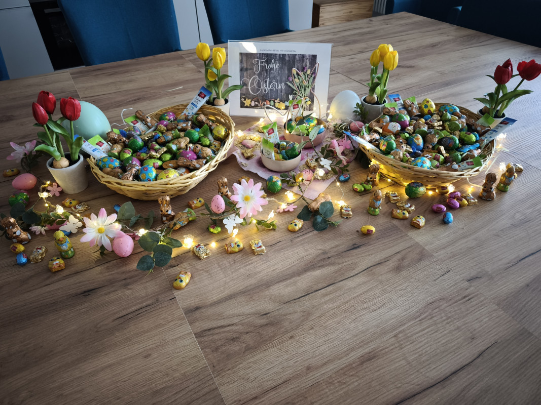 Als Zeichen der Wertschätzung zu Ostern erhalten alle Mitarbeiter der Seniorenresidenz Gau-Odernheim ein kleines Präsent 🎁. Das Geschenk besteht aus einer liebevoll zusammengestellten Osterbox auf dem Tisch mit einer Auswahl an feinen Schokoladenköstlichkeiten 🍫 und einem Gruß an die Mitarbeiter 💌. Mit diesem Präsent möchten wir uns herzlich für den täglichen Einsatz, die Fürsorge und das Engagement aller Mitarbeiter bedanken 🙏. Gerade in der Arbeit mit Senioren ist ein hoher persönlicher Einsatz gefragt, der große Anerkennung verdient. Wir wünschen allen unseren Mitarbeitern ein schönes Osterfest, erholsame Feiertage und viele frühlingshafte Momente🌷.
