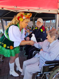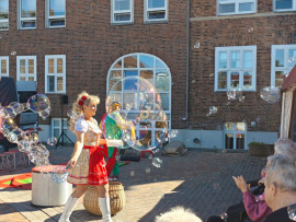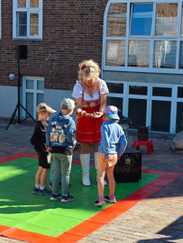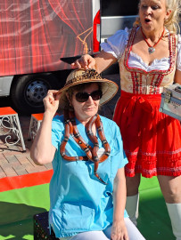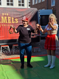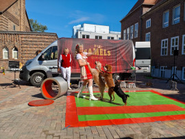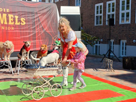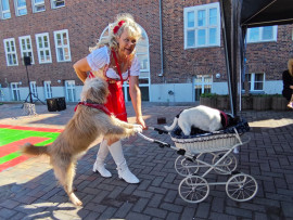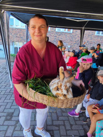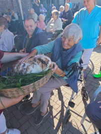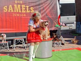 Besuch von „Samels Junior“ mit Hasen, weißen Tauben, Schlangen, einer Spinne und Hunden: eine bezaubernde Tiershow für Bewohner und Kita-Kinder Pfingstanger.