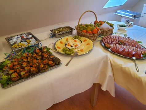 Schon beim Eintreten verströmte das Brunch-Buffet einen Duft, der Vorfreude weckte. Der Küchenleiter Herr Ehmig hatte sich einmal mehr selbst übertroffen. Mit viel Liebe zum Detail und einem sicheren Gespür für Geschmack und Vielfalt präsentierte er eine Auswahl, die keine Wünsche offenließ. Von raffinierten Vorspeisen über herzhafte Klassiker bis hin zu süßen Verführungen – jedes Gericht war ein kleines Highlight für sich. Fein abgestimmte warme und kalte Speisen und kunstvoll angerichtete Desserts machten den Faschingsbrunch zu einem wahren Fest für alle Sinne. 🍽️🥗🍰