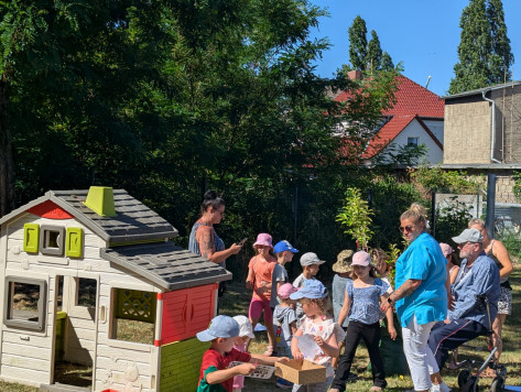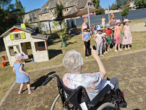 Die Kita-Gruppe besuchte uns im letzten Jahr regelmäßig in unserer Senioreneinrichtung, um gemeinsam zu singen 🎵, zu spielen 🧩, zu basteln ✂️ oder Programme zu Weihnachten und zu Geburtstagen aufzuführen 🎭.